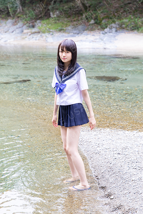 セーラー服から水着に着替えてエアマットを膨らまして川遊び!!